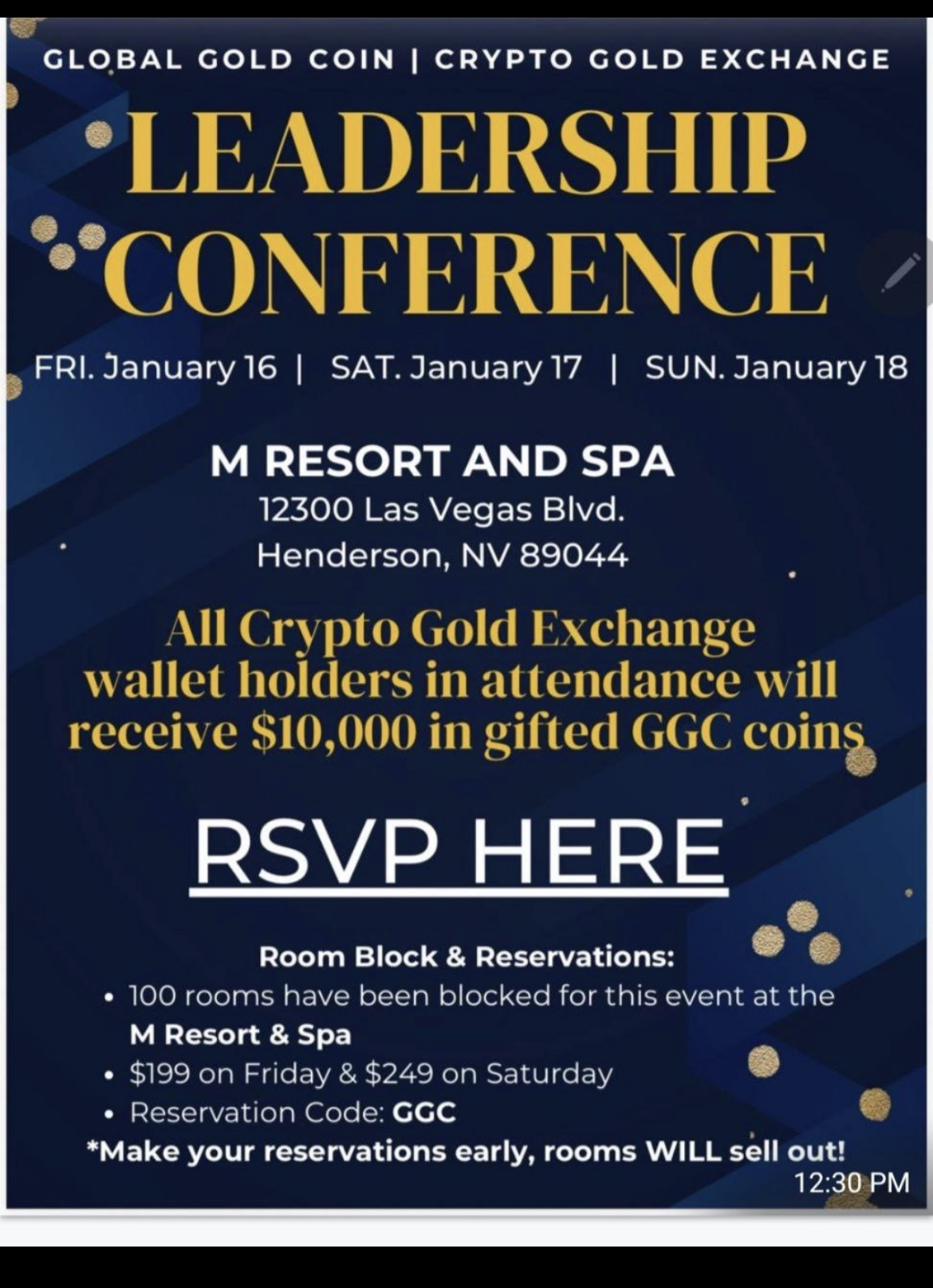 Join one of the biggest events of the year at the M Hotel in Las Vegas on February 20th-22nd. This is going to be a true eye-opener and an intensive look inside of the Global Gold Coin operation, meet the powerful leaders, hear from industry leaders, and see for yourself if the Global Gold Coin program has all the earmarks of phenomenal success for all our members.